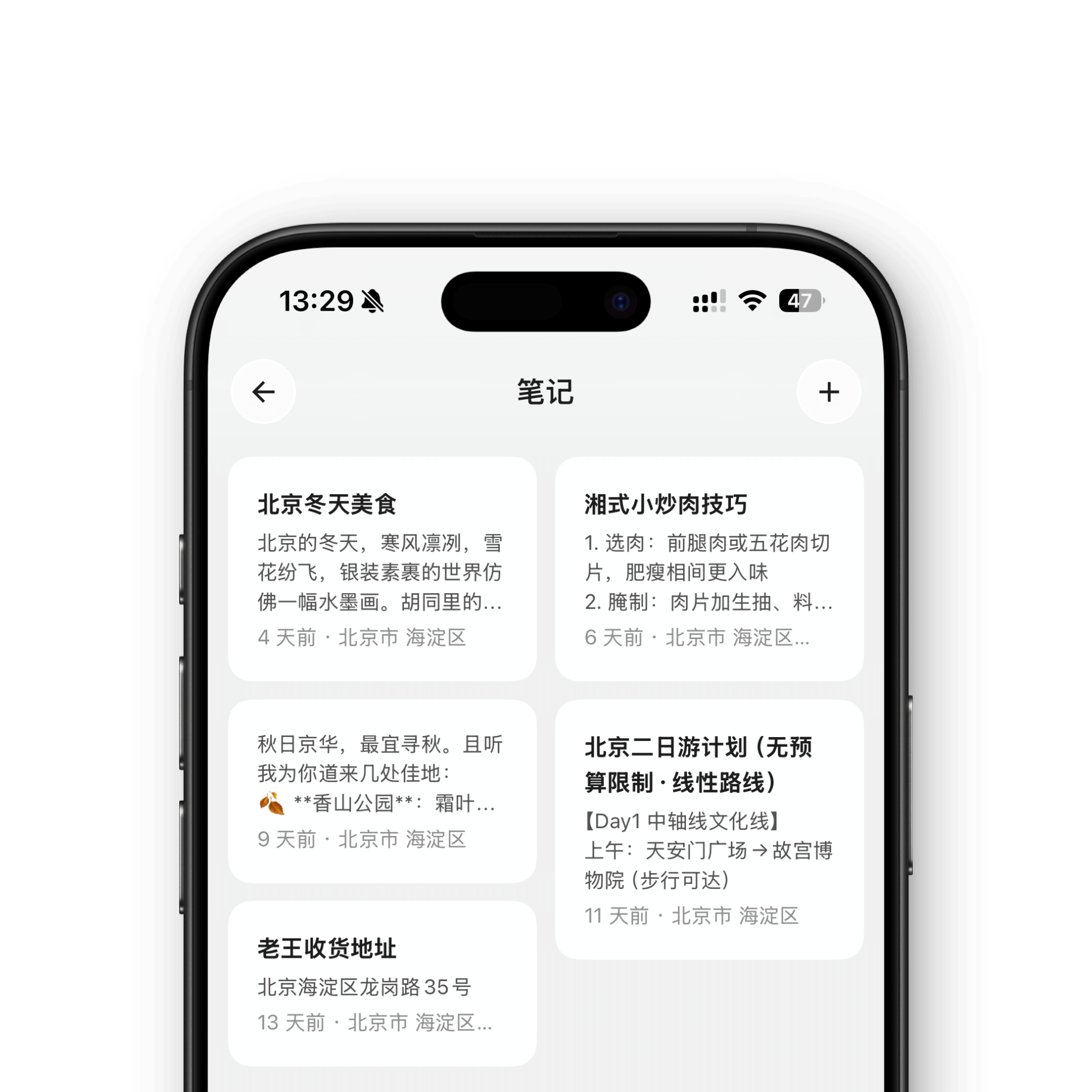 随时随地记录你的想法、笔记和重要信息,成为你的第二大脑。 让每一个灵感都有处可寻,每一次思考都有迹可循。